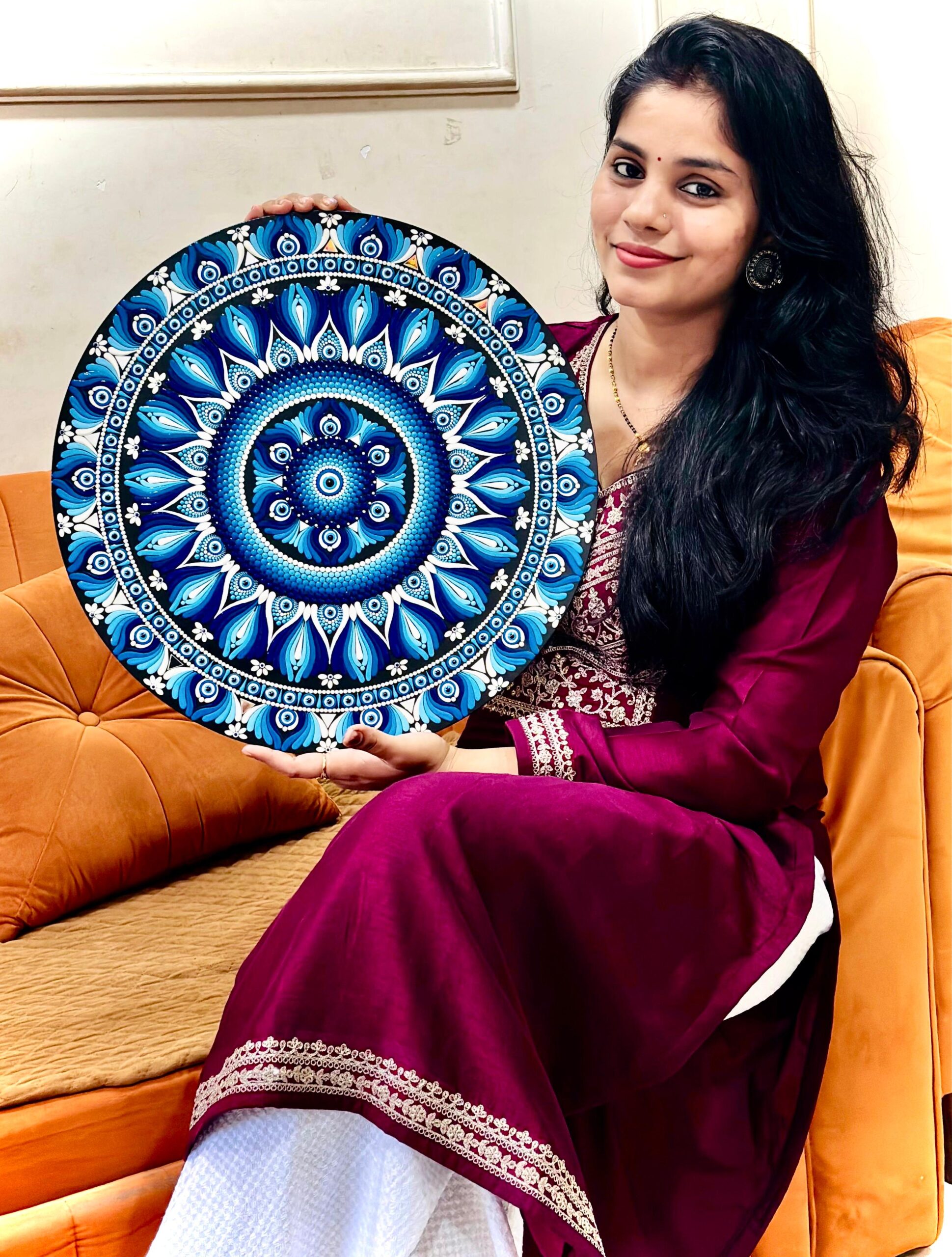 Evil Eye Blue Mandala Art | 22-Inch Round Wall Decor